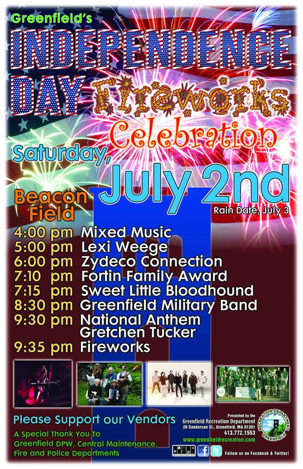 Greenfield's Independence Day celebration is tomorrow night with a beautiful fireworks display starting at 9:35 at Beacon Field. If you are looking this week's fireworks schedule, click here for this weekend's state wide schedule. Wishing you a wonderful 4th of July weekend!